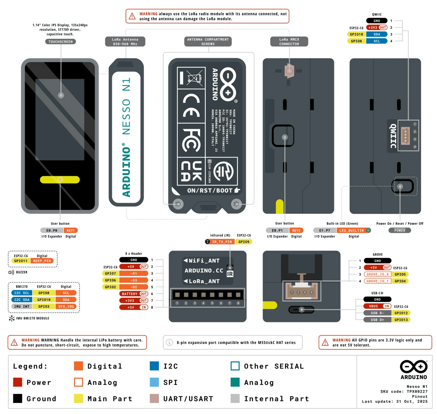 Arduino Nesso N1 is a compact all in one IoT development kit powered by ESP32 C6 with a built in touchscreen and battery.