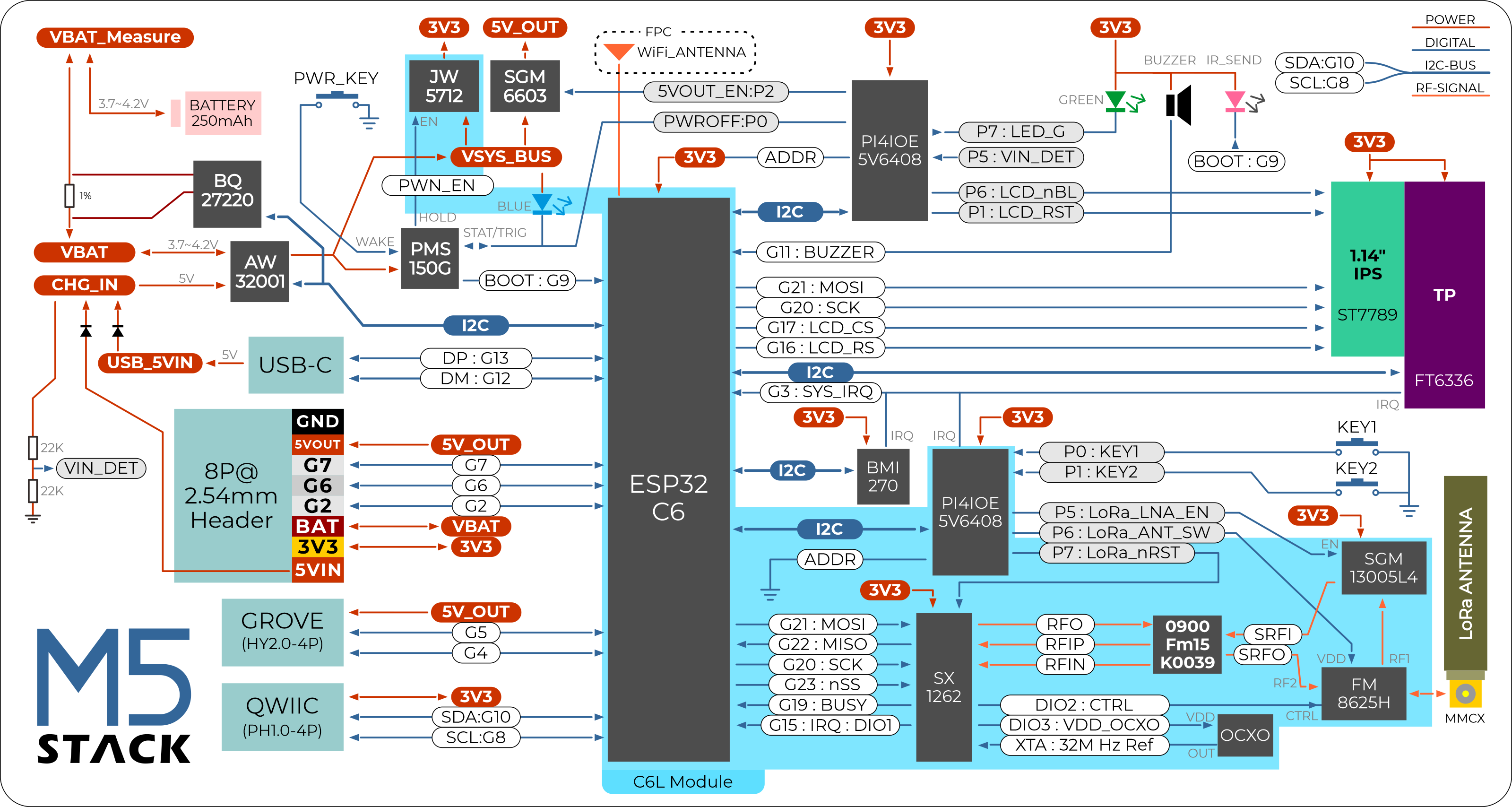 - There’s an 8-pin header that works with M5Stack’s HAT modules, so you can quickly add things like servos, env sensors, or even thermal cams.